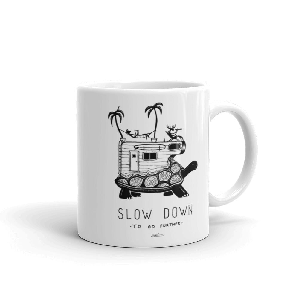 Slow Down Ceramic Mug. Get your surf camp vibes on every time you have a sip of coffee... White, glossy 11 oz ceramic mug. Dishwasher safe & Microwave safe :)