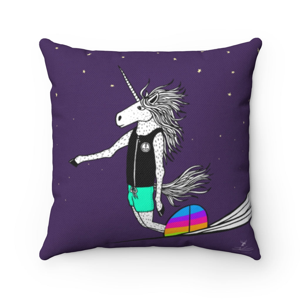 Surfing Unicorn Pillow. If you want to take a nap dreaming about nigh surfing unicorns, this is the pillow for you. See some other artwork you want to get as a pillow? Just reach out and let us know here.